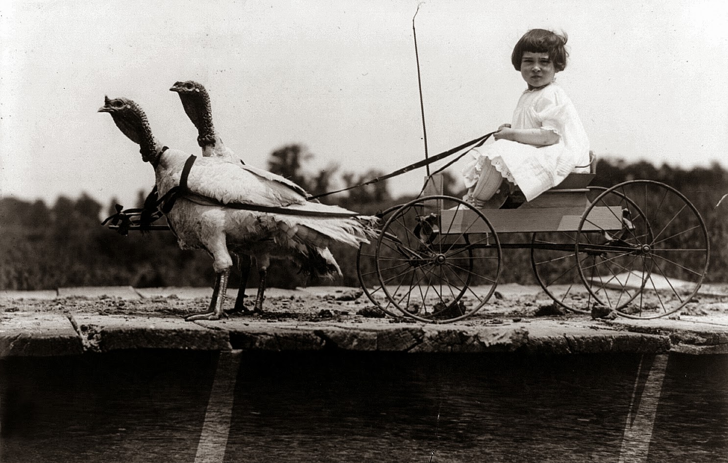 SUMMARY: Girl in cart harnessed to two turkeys. MEDIUM: 1 photographic print. CREATED, PUBLISHED: c1909 Aug. 9. Credit Line: Library of Congress, Prints & Photographs Division, [reproduction number, LC-USZ62-66339]