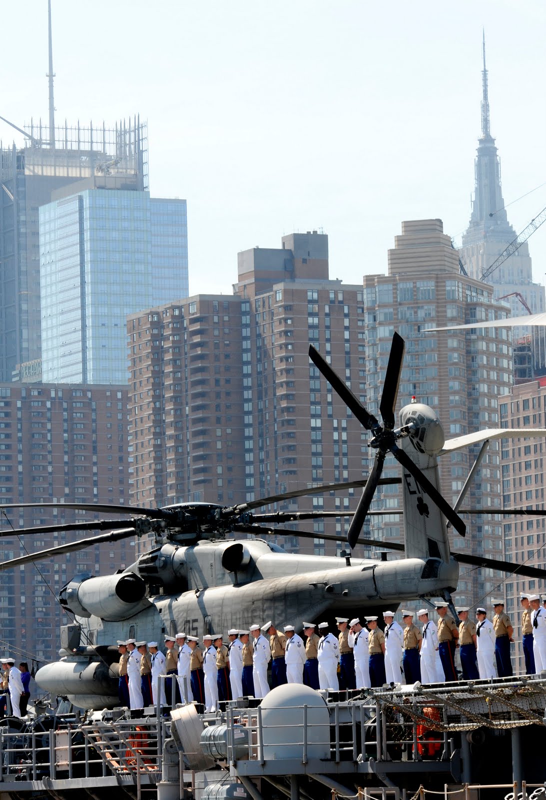 100526-N-9689S-005 NEW YORK (May 26, 2010) Sailors and Marines man the rails as the multi-purpose amphibious assault ship USS Iwo Jima (LHD 7) arrives in New York to participate in Fleet Week New York. Approximately 3,000 Sailors, Marines and Coast Guardsmen are participating in the 23rd Fleet Week New York, which will take place May 26 through June 2. Fleet Week has been New York City's celebration of the sea services since 1984. (U.S. Navy photo by Mass Communication Specialist Seaman Richard Stevens/Released) |