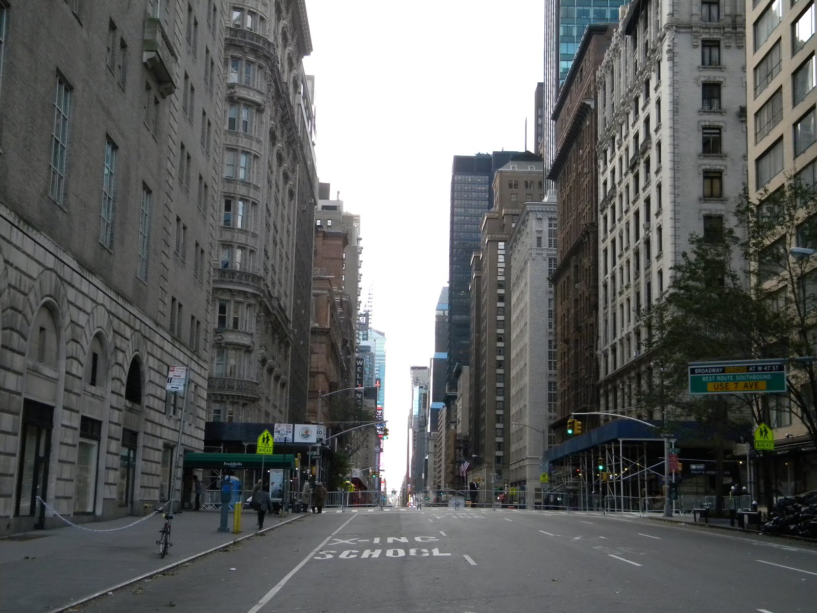 11/02/12 last Friday morning, five days post Sandy, New York City. Looking toward the south from 59th street along a eerily deserted and barricaded 7th avenue.. This Monday morning (11/05/12) i still have friends with no electricity or heat in Manhattan and gas is hard to find. #NYC #architecture #HurricaneSandy #Sandy #NewYorkCity