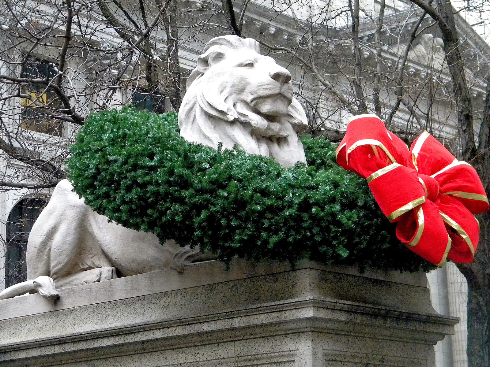 Happy #Caturday! The New York Public Library Lions Patience and Fortitude got vintage look wreaths this year :) #NYC #Christmas image/editing/sookietex and released into the public domain. More about this image and story at Public Domain Clip Art - http://publicdomainclip-art.blogspot.com/2013/12/new-york-city-public-library-lions.html