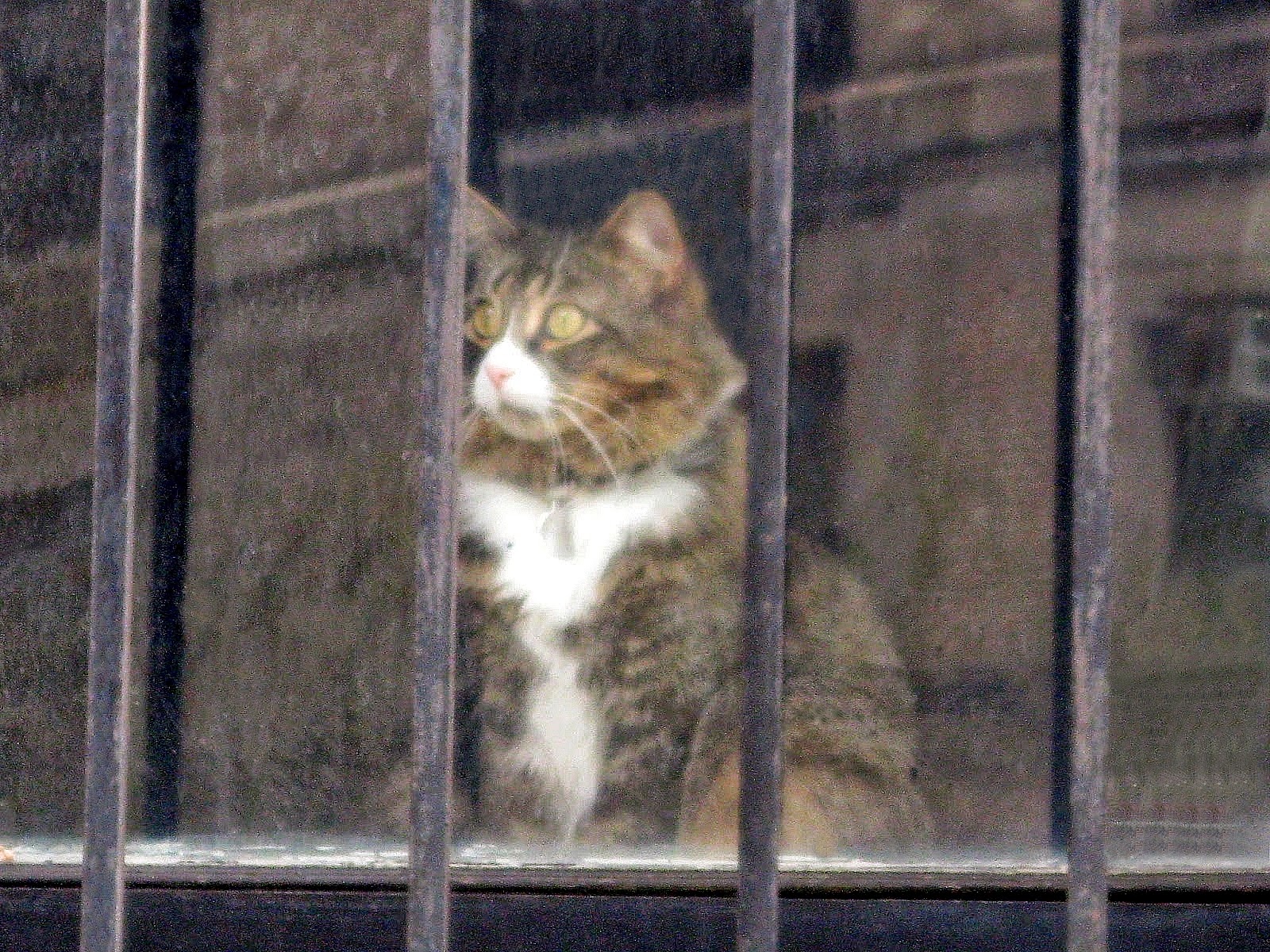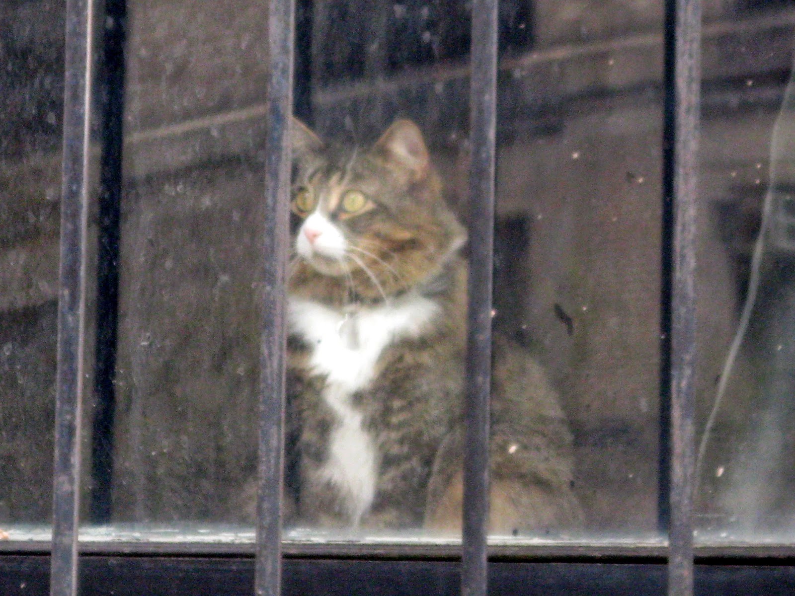 Familiar feline face surveys upper west side nyc passers-by