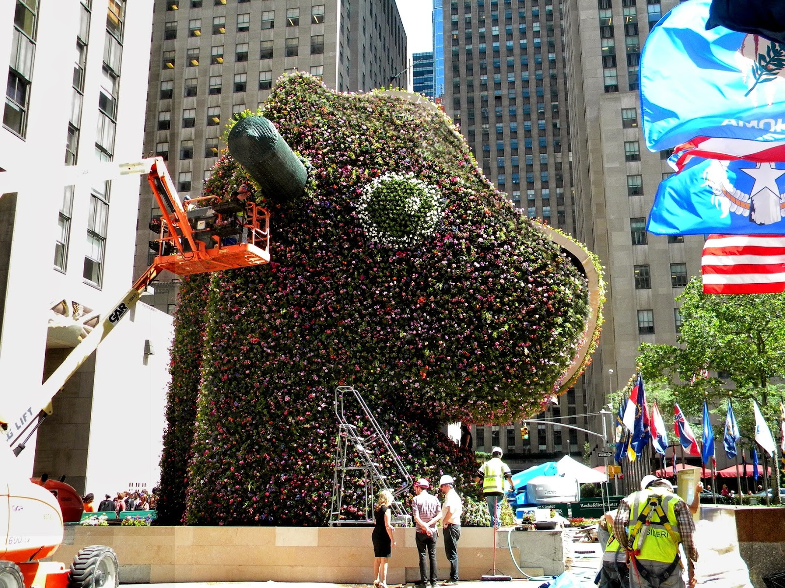 The 37-foot-tall piece is composed of 50,000 flowering plants and has an internal irrigation system to maintain them. Beneath, it's made of a geotextile fabric and soil.