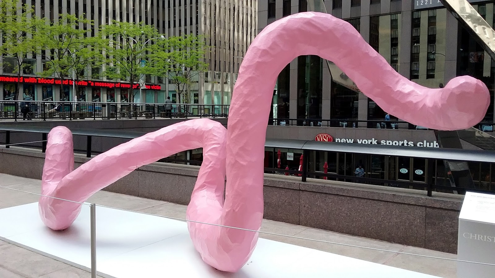 Franz West (1947-2012) Untitled. Styrodur, steel, epoxy resin, glass fiber mats, synthetic resin, lacquer and metal base. 89 x 237 3/8 x 61 in. Executed in 2011.